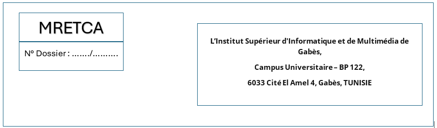 3. Délai de réception des dossiers de préinscription- Les dossiers de candidatures doivent être adressés uniquement par voie postale recommandé au service master à :L’Institut Supérieur d'Informatique et de Multimédia de Gabès, Campus universitaire – BP 122, 6033 Cité El Amel 4, Gabès, TUNISIE,Au plus tard le 31 juillet 2024, le cachet de la poste faisant foi.