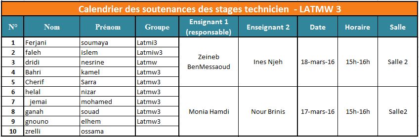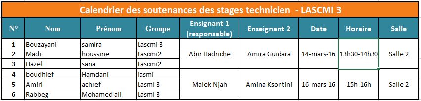 2ème session des soutenances de validation des stages technicien - semestre 2 A.U. 20105/2016