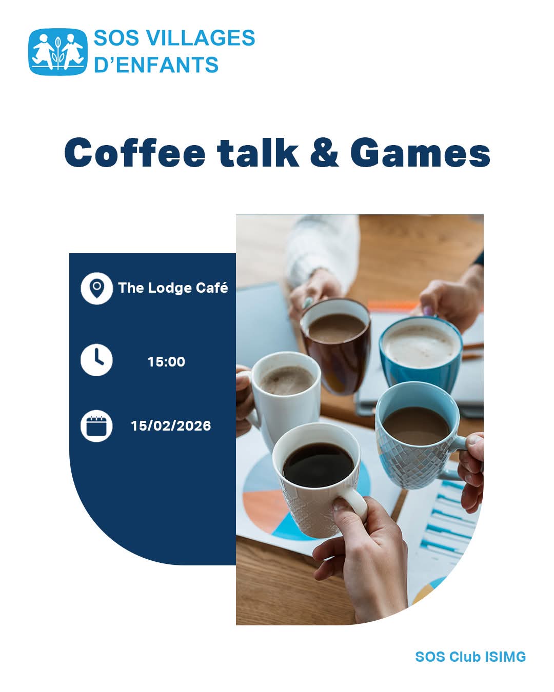 Coffee Talk & Games Organisé par SOS Club Ambassadeurs ISIMG 15 Feb. 2026 15:00 The Lodge Café Avis des Participants Images de l'évènement
